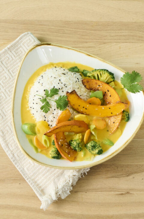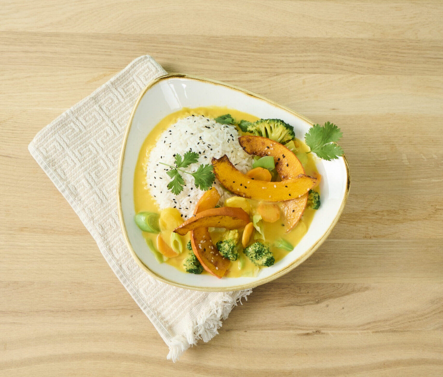 A fall full of joy! Pečená dýně, křupavá čerstvá zelenina a krémová mangovo-kokosová omáčka. Servírováno s rýží, doplněno o sezam a směs pražených semínek pro extra crunch. Rostlinný bowl, který hřeje, zasytí a chutná tak dobře, jak vypadá. Bez kompromisů.